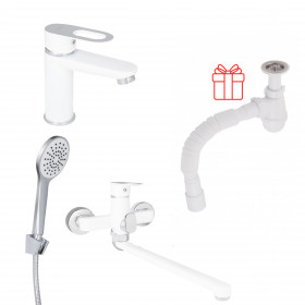 Змішувач для раковини (LDLAT001WHI45423), змішувач для ванни (LDLAT005WHI45425), сифон (LU01)