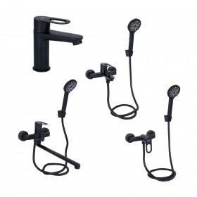 Комплект змішувачів для ванної кімнати Lidz Latwa 001Black+Lidz Latwa 006Black+Lidz Latwa 005Black+Lidz Latwa 010Black