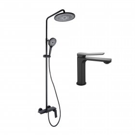 Комплект змішувачів Qtap Slavonice: Душова система QTSLA111BLM45906 + Змішувач для раковини QTSLA1042103B